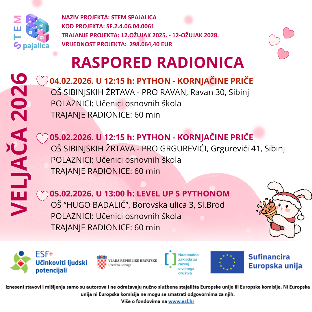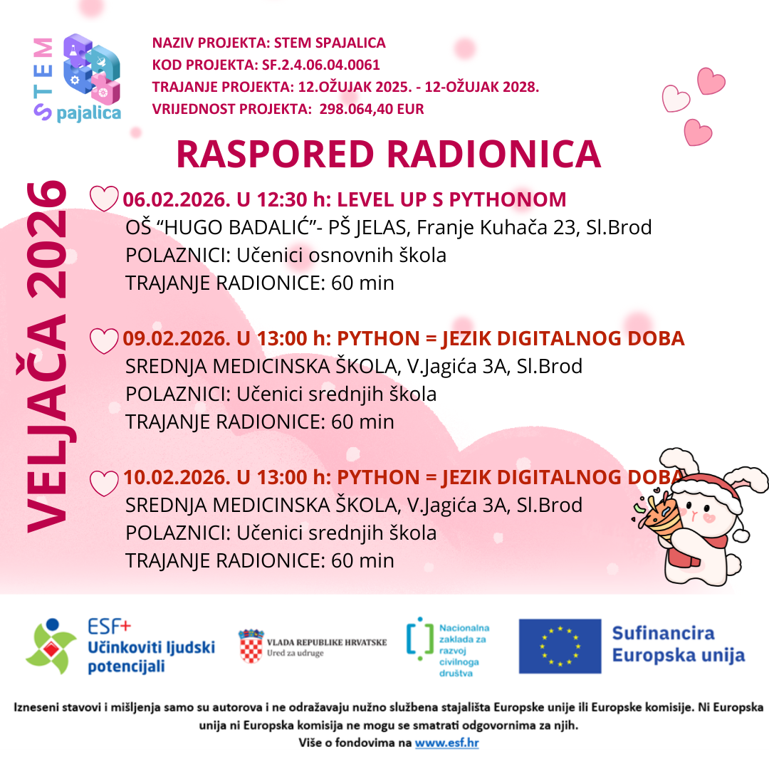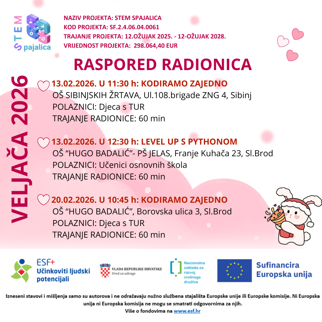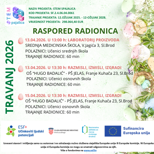 Projekt “STEM Spajalica” je inicijativa usmjerena na popularizaciju STEM područja (znanost, tehnologija, inženjerstvo i matematika) među djecom i mladima u Brodsko-posavskoj županiji.